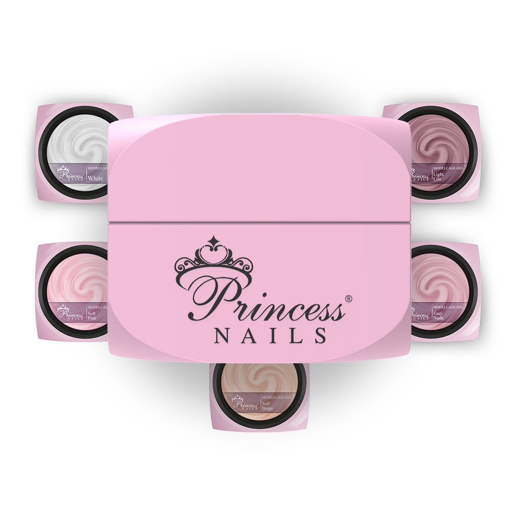 Wähle aus dem ganzen PrincessNails-Schweiz Sortiment 5 Modellage Gele deiner Wahl
